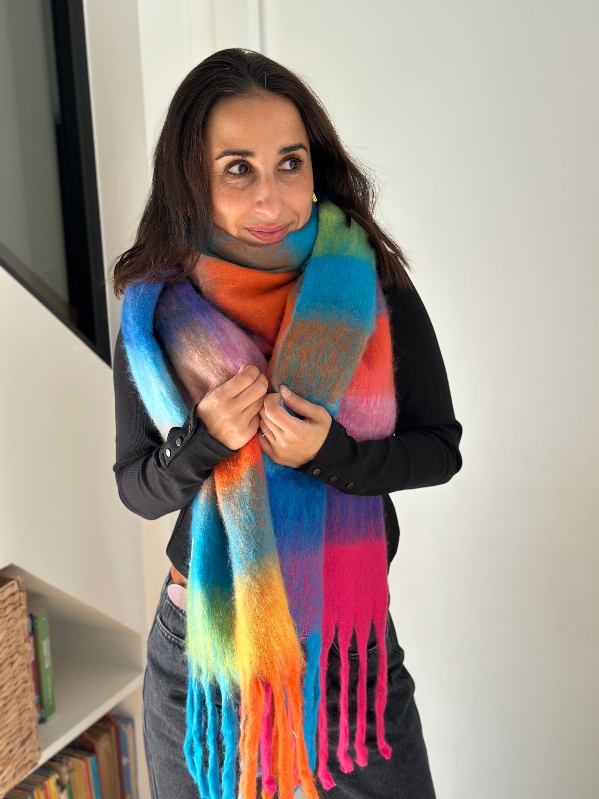 L'écharpe Héléna multicolore qui vient apporter du peps à votre tenue. On l'adore aussi pour sa douceur.
