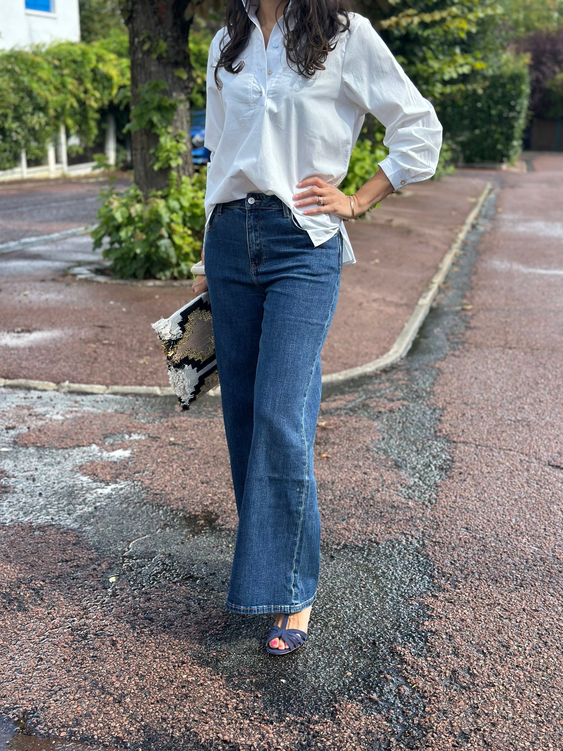 Le jean Pietro est un jean palazzo c'est à dire que c'est un pantalon très large des hanches à la chevilles.