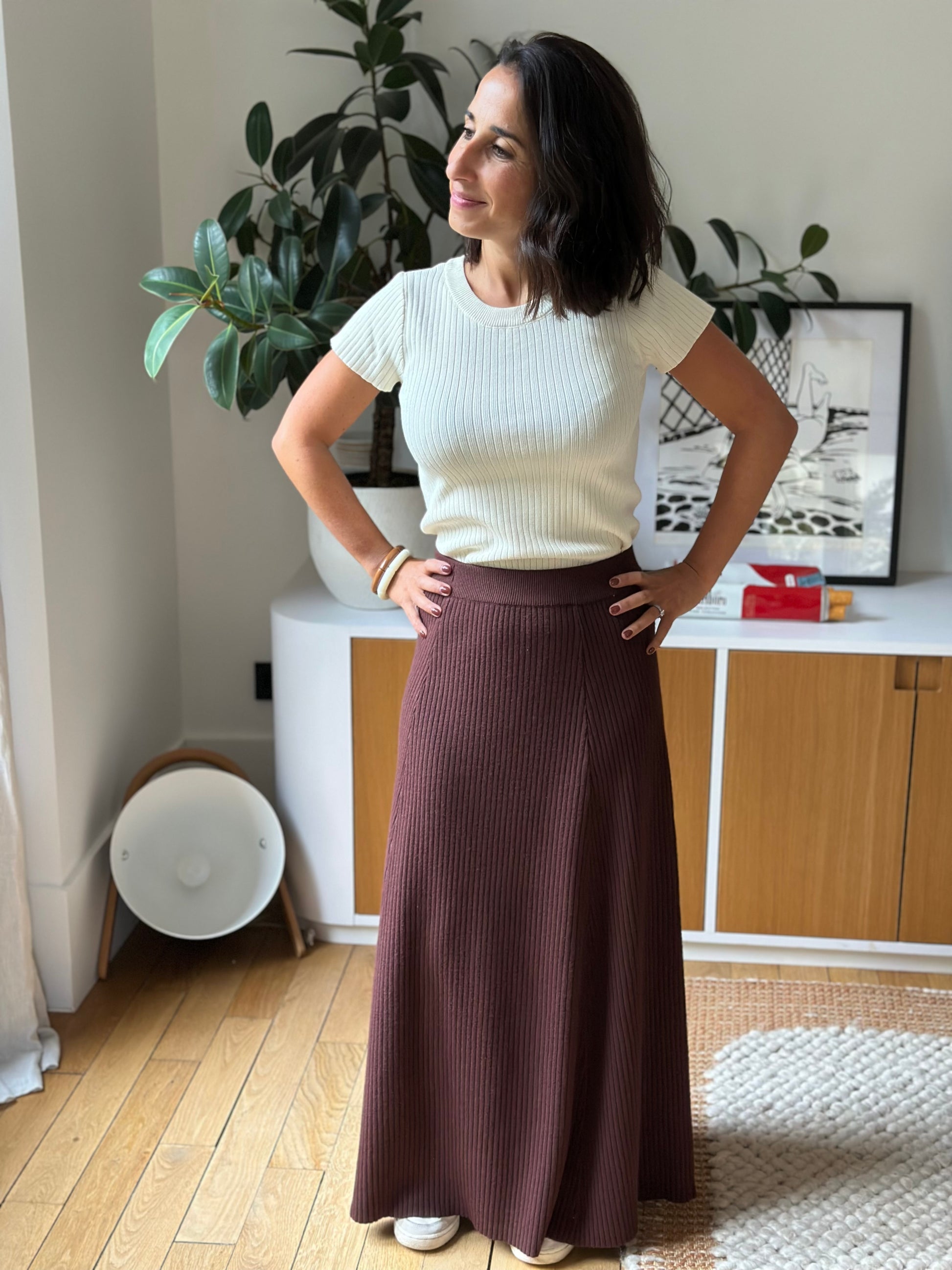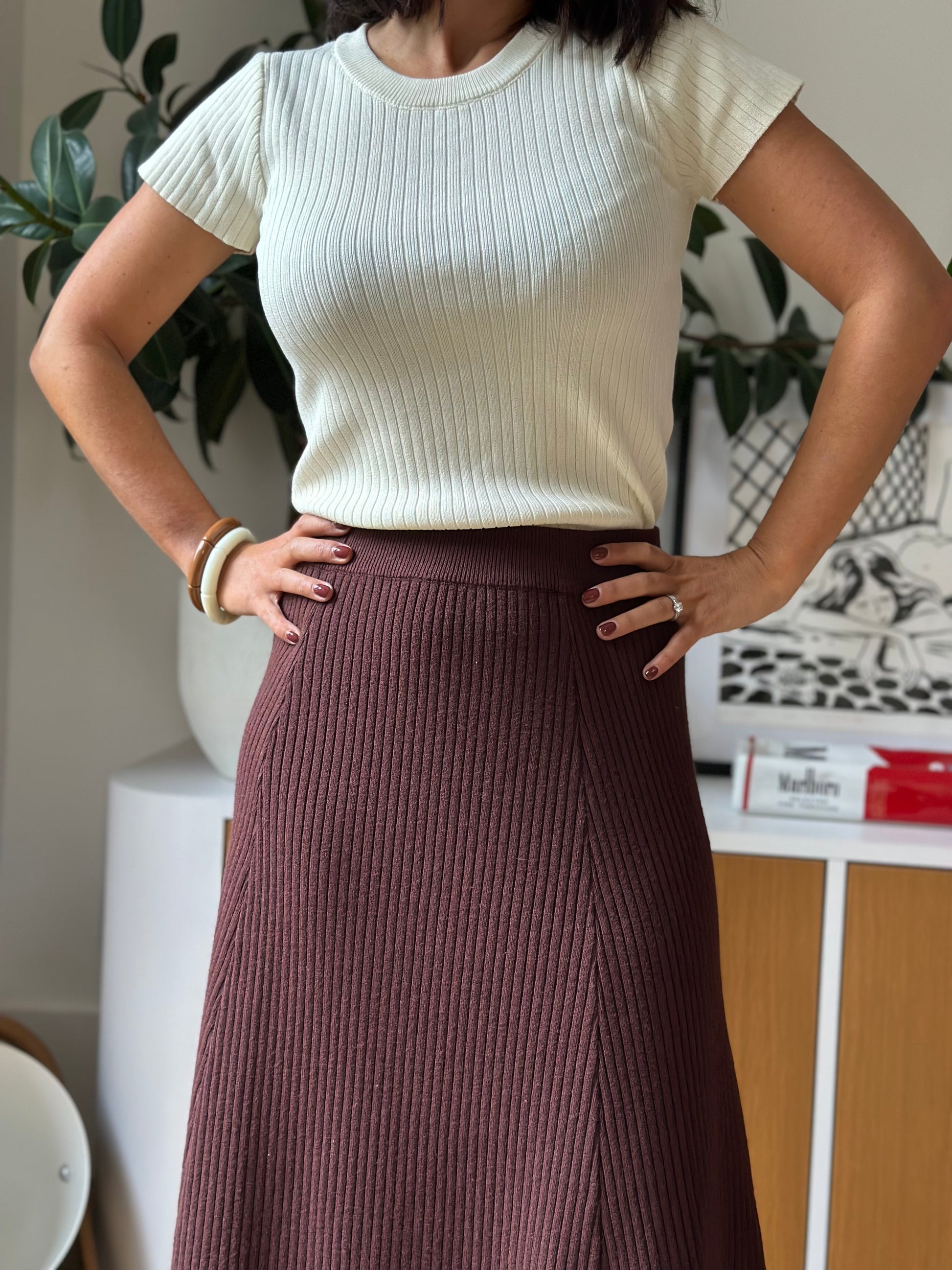 La jupe Erel marron avec la couleur de saison est très agréable à porter grâce à sa laine et son élastique à la taille pour permettre plus de confort.