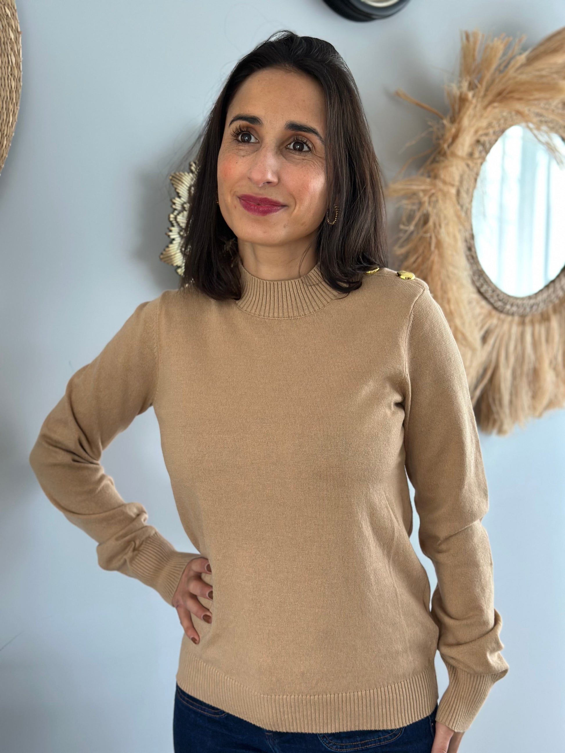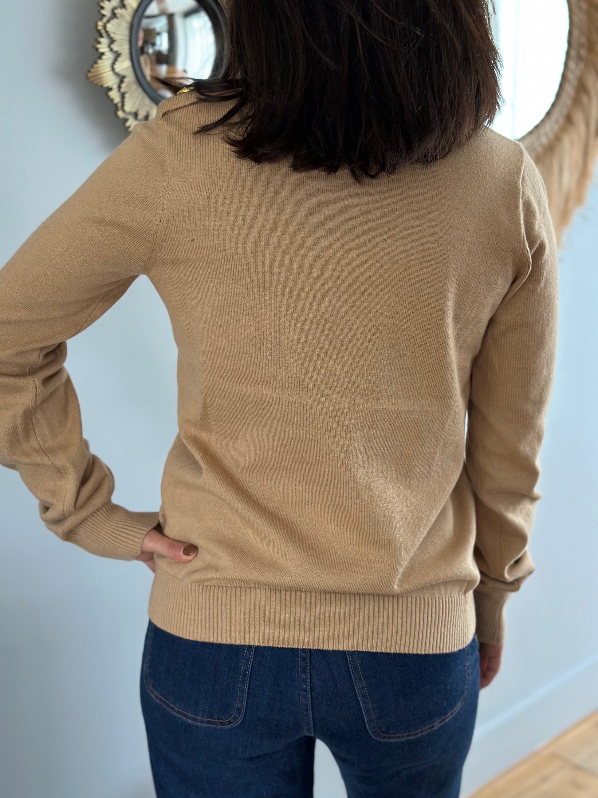 Pull Evan en laine et coton donnera un style chic à votre tenue grâce à ses boutons dorés.